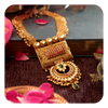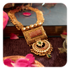 This temple-inspired necklace is more than jewellery — it's a timeless symbol of heritage. The sunburst pendant radiates grace, perfect for bridal trousseau or traditional celebrations.