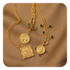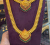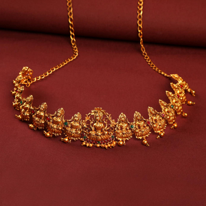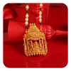This intricately sculpted temple necklace brings the goddess's blessings closer to your soul. Adorned with miniature deities and antique detailing, it evokes devotion, tradition, and timeless beauty.